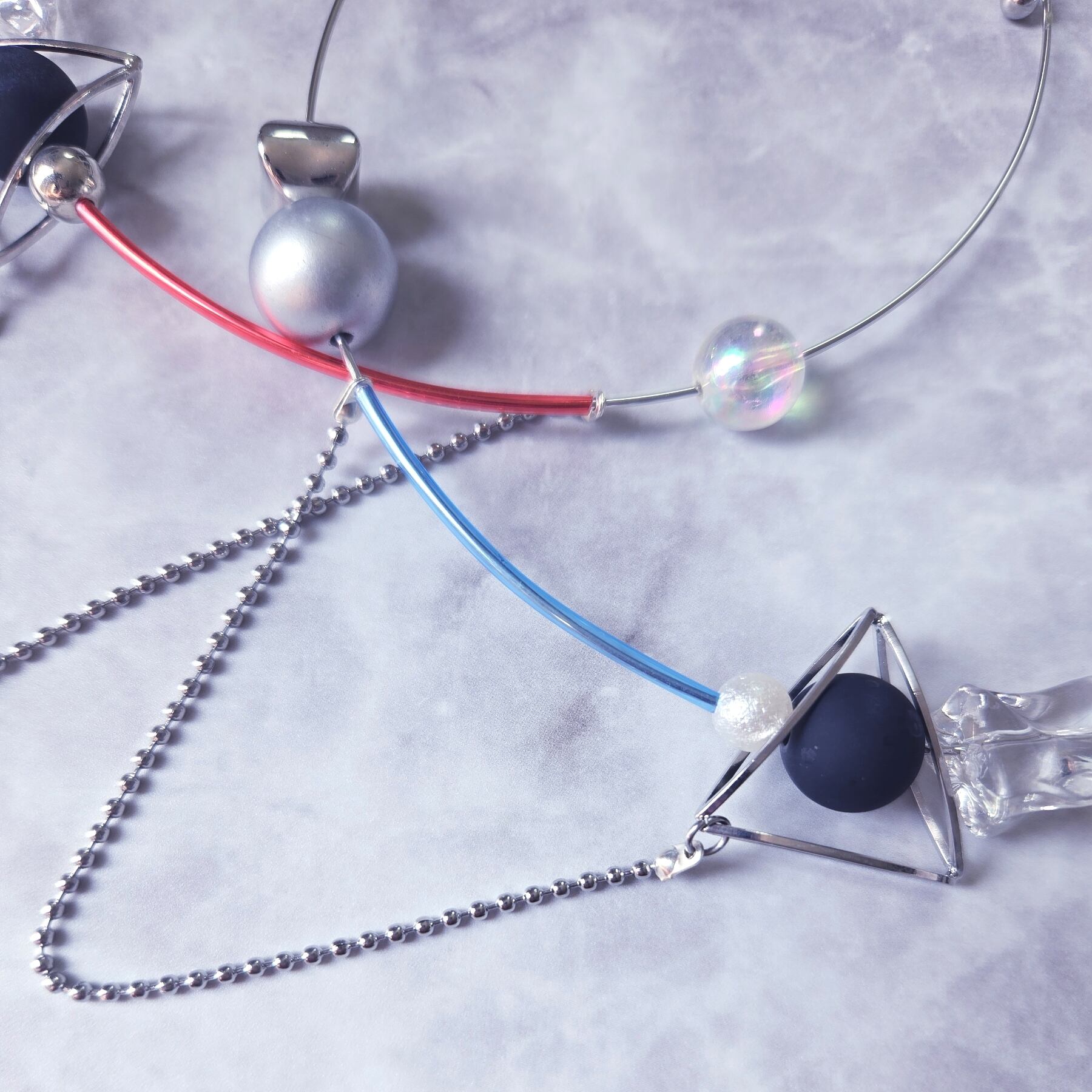 【モード系】ワイヤー 個性派フープネックレス PVC 【モードアクセサリー】