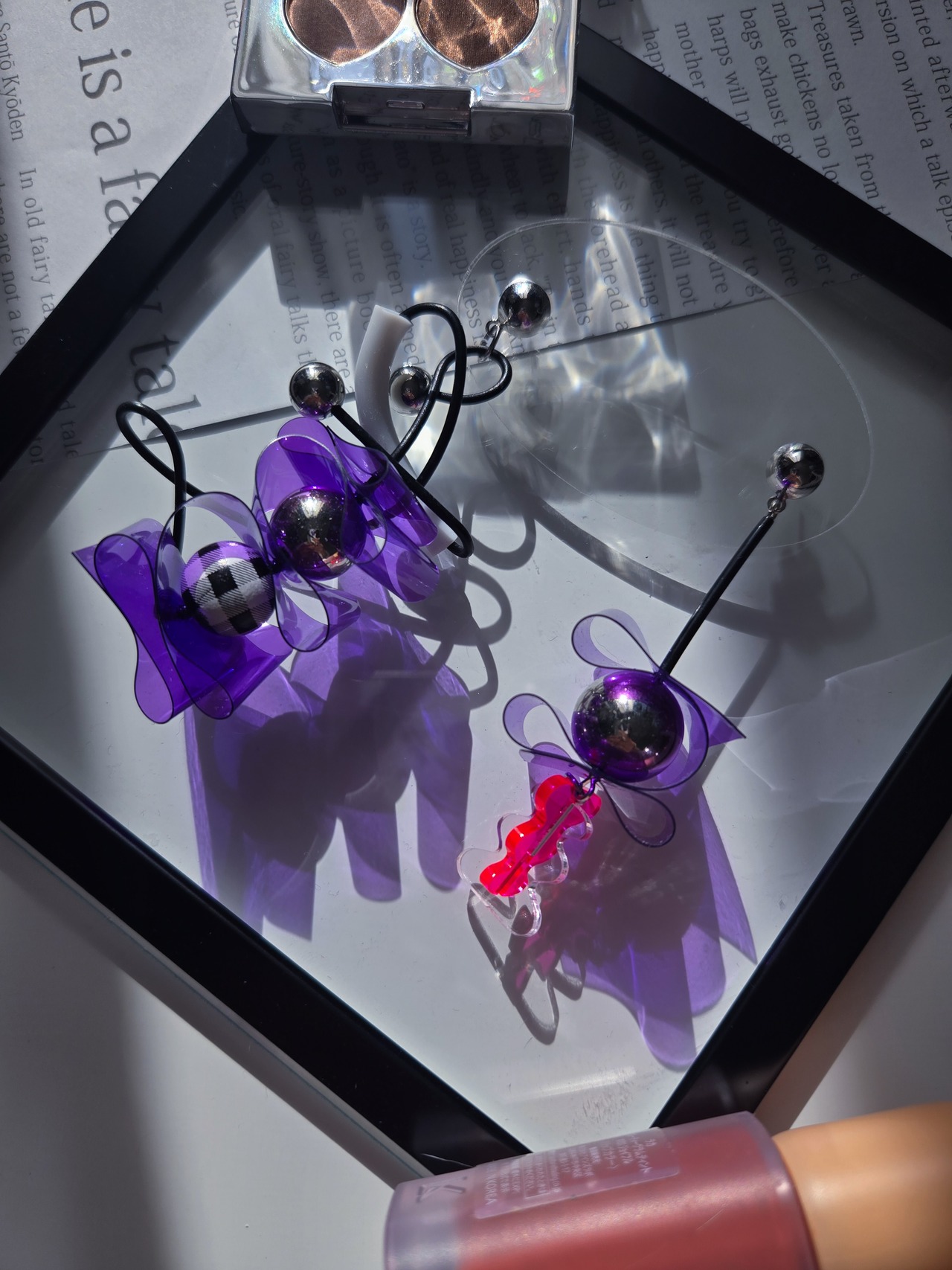 モード系 大ぶりピアス リボン ネオンカラー カラフル POP PVC 軽やか 可愛い チタンポスト おしゃれ
