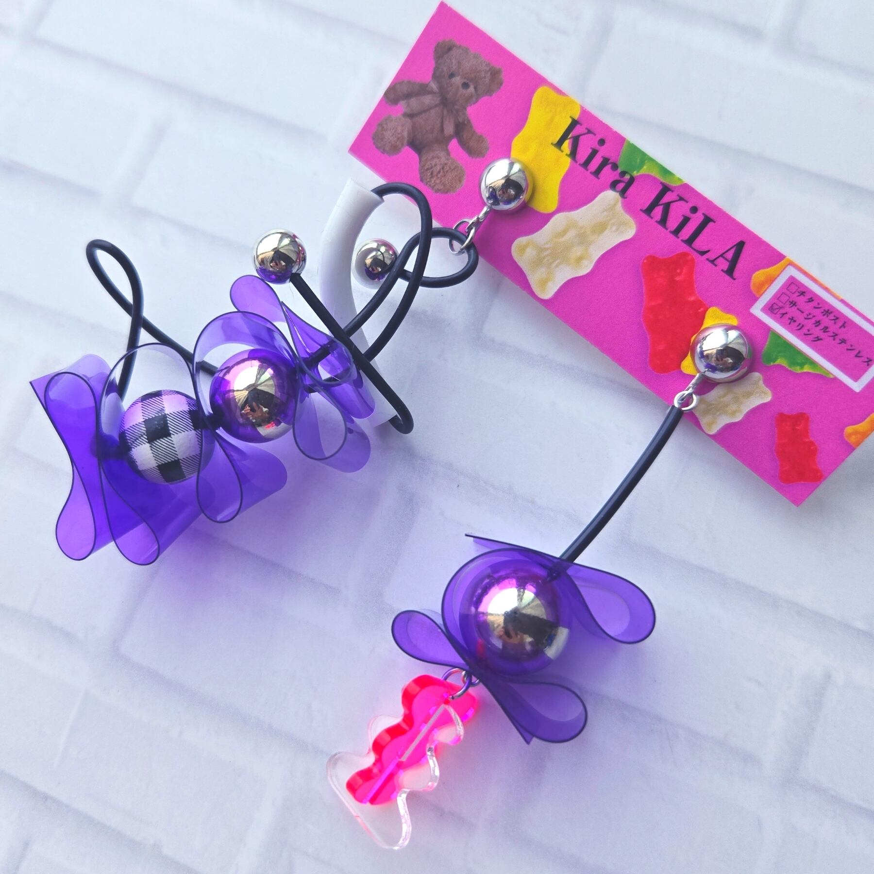 ■カラフルで遊び心満載のワイヤー×PVCのイヤリング。