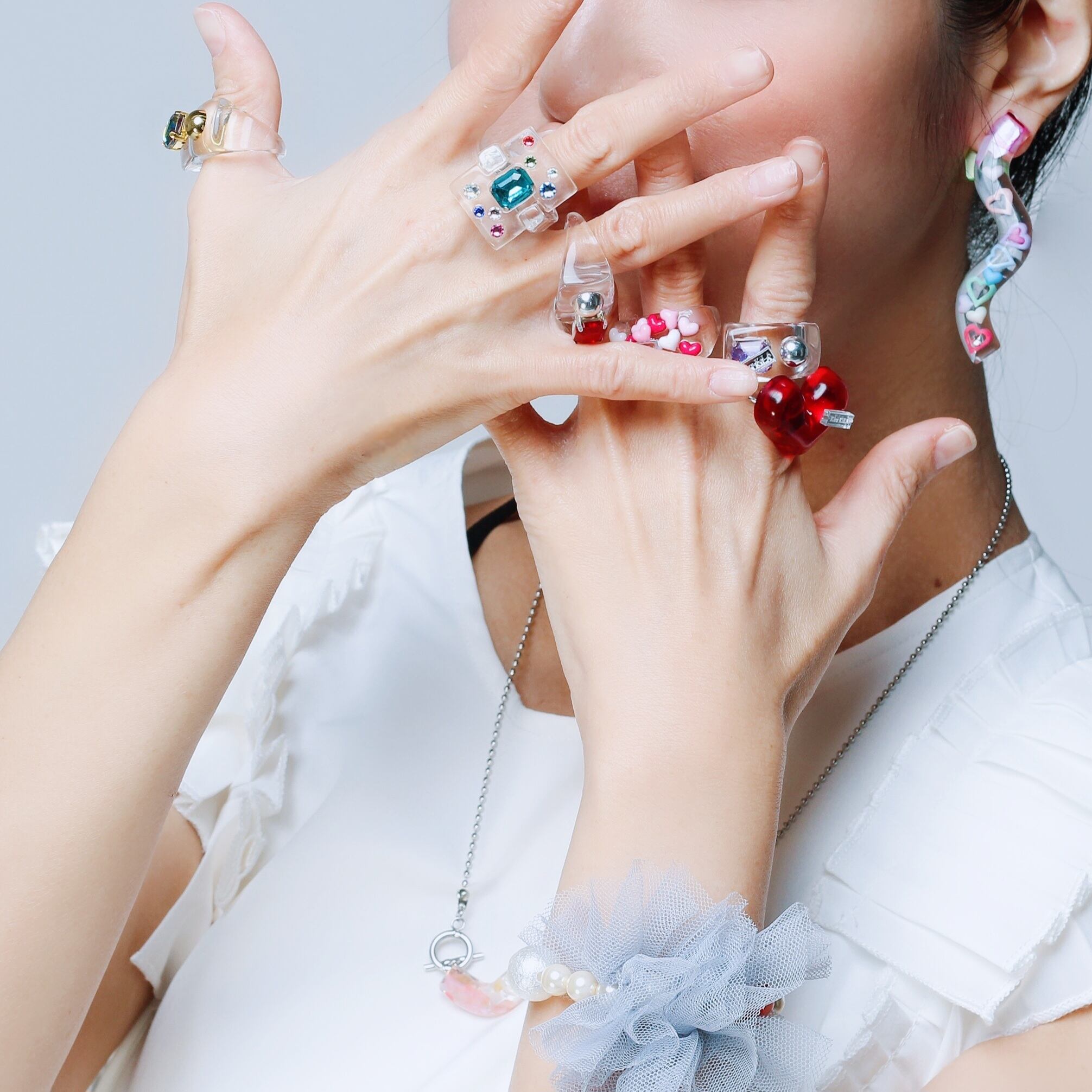 大人の遊び心を詰め込んだロックアイスのようなビジューリング。