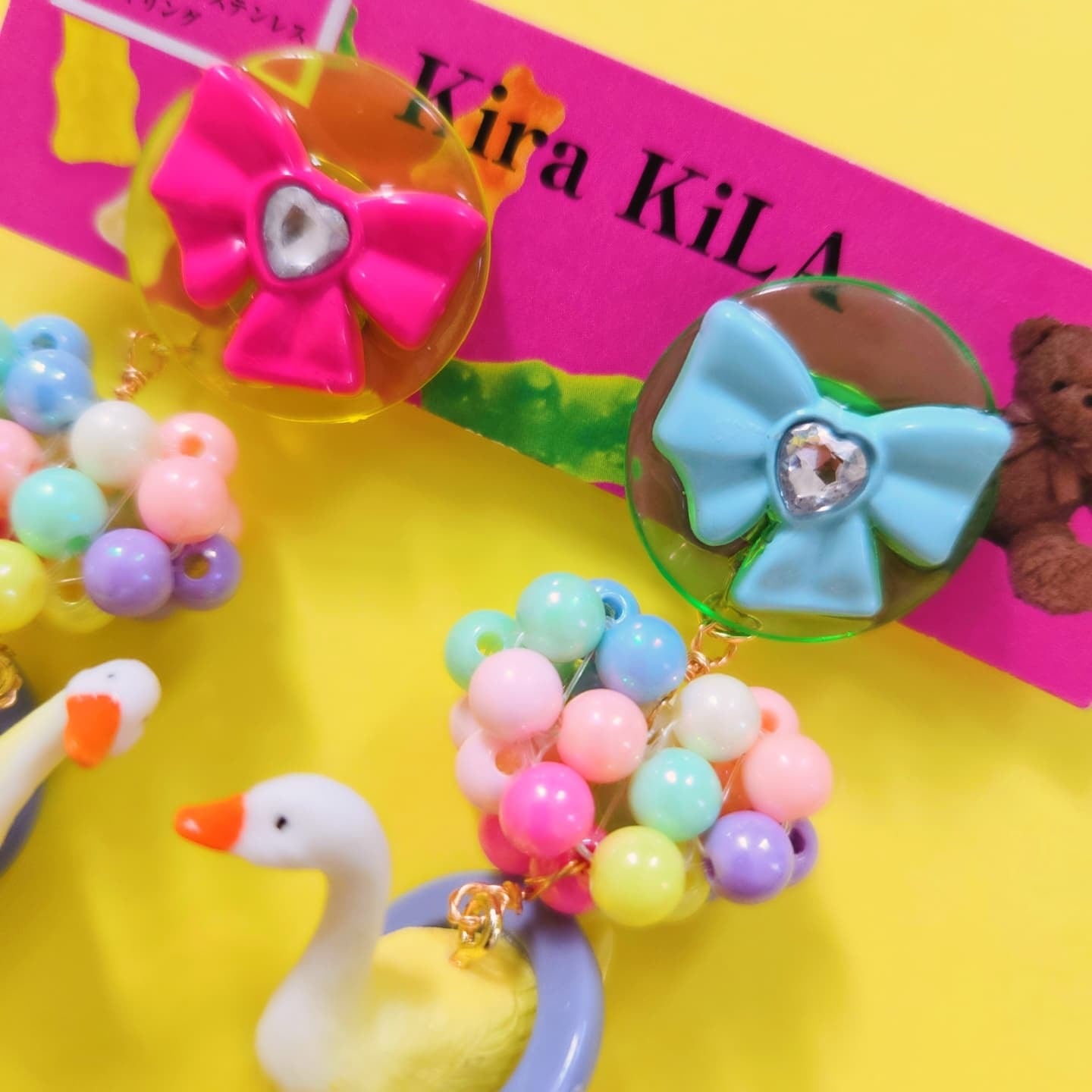 カラフル アヒル 可愛い アクリルピアス 軽やか チタンポスト POP おしゃれ 個性派 デイリーユース