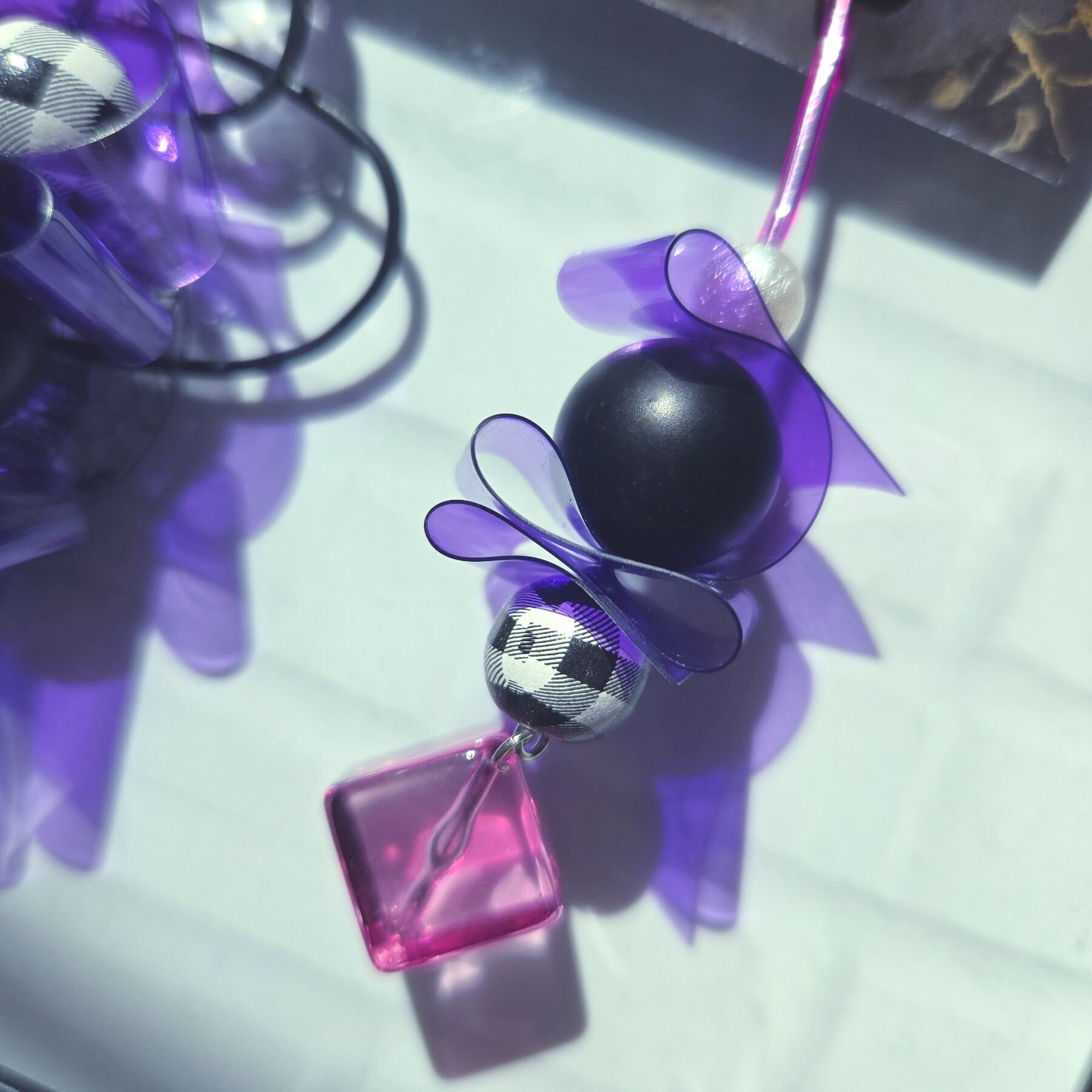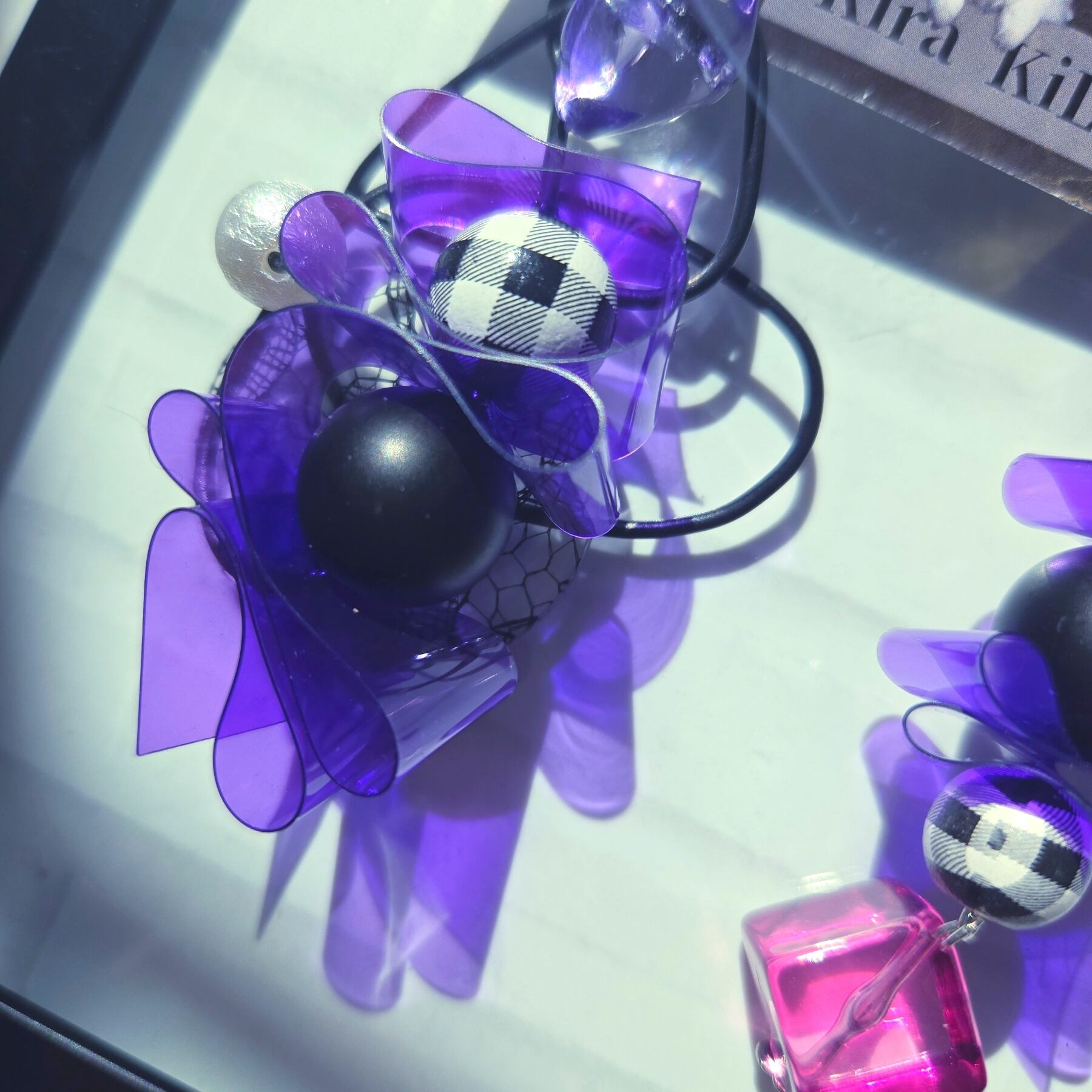モード系 PVC パープル レース ゴシック カラフル 大ぶり おしゃれ ワイヤーピアス 夏 チタンポスト