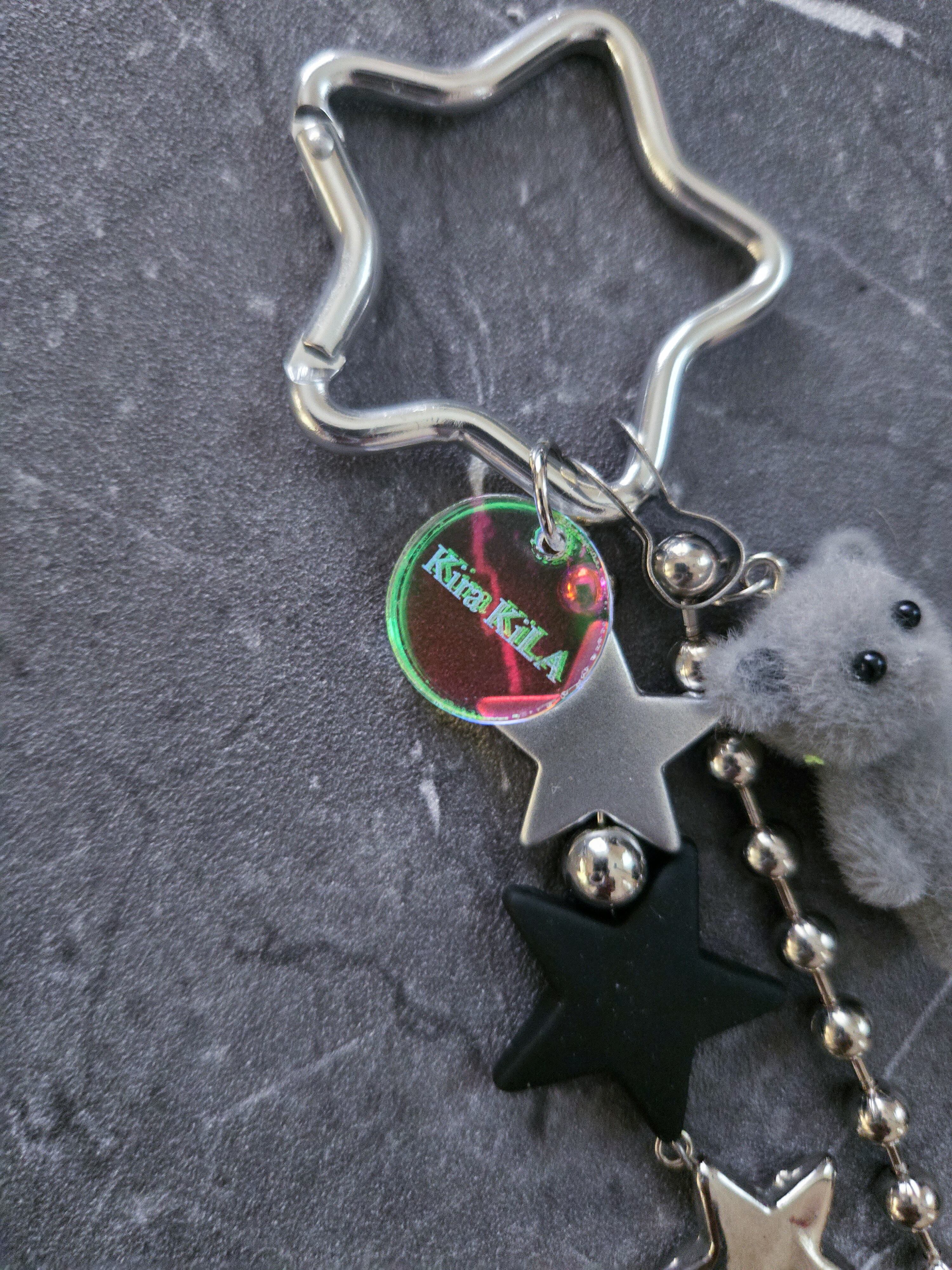 モード系 バッグチャームキーホルダー 星 おしゃれ モノトーン