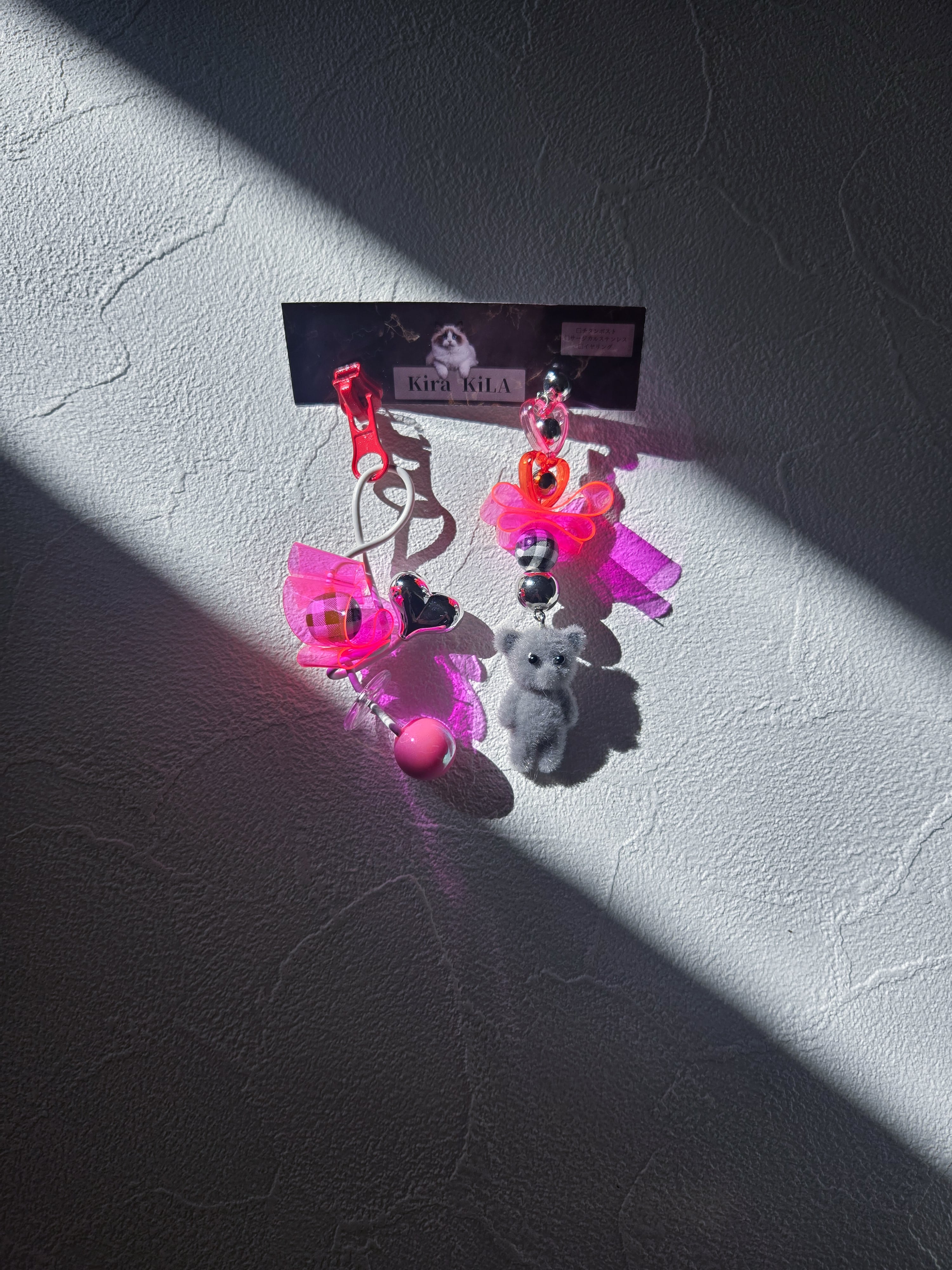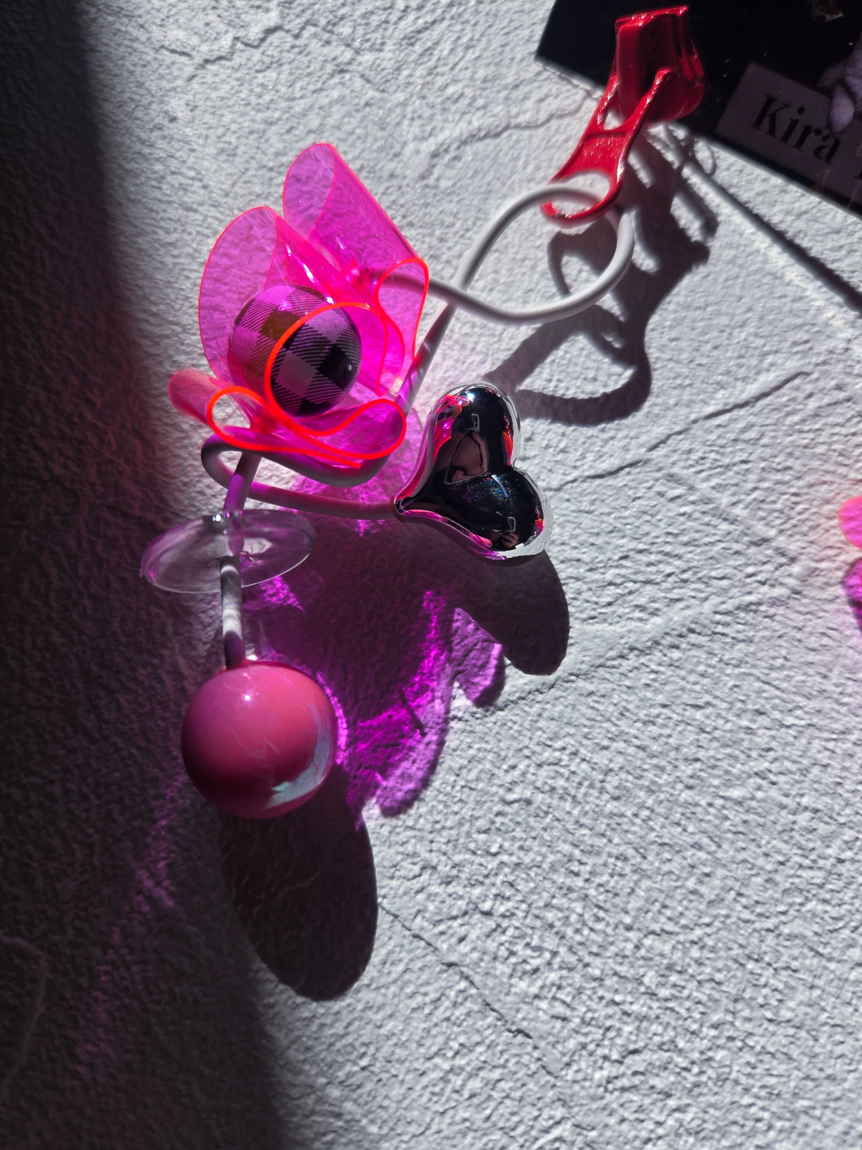 モード系♡鮮やかピンクのPVCピアス 個性的 くま 金属アレルギー対応 ファスナーピアス