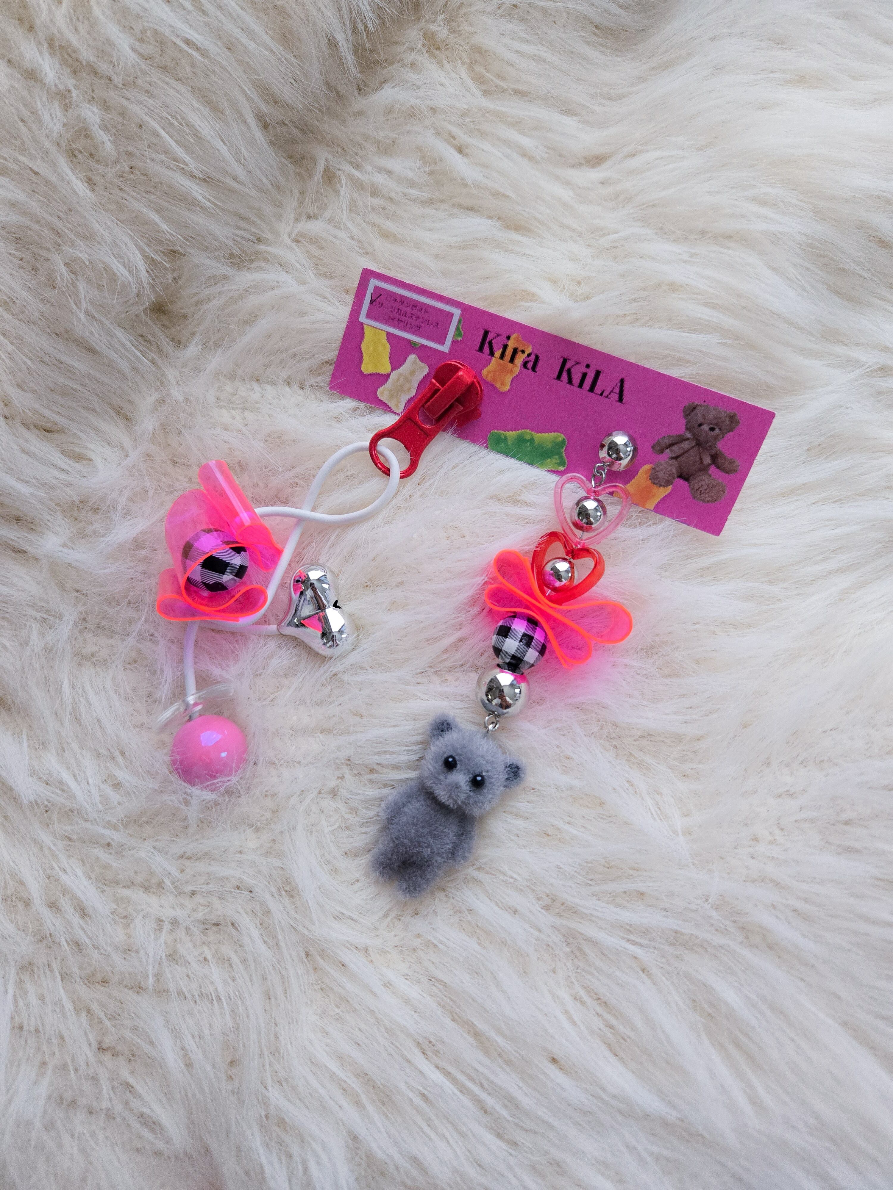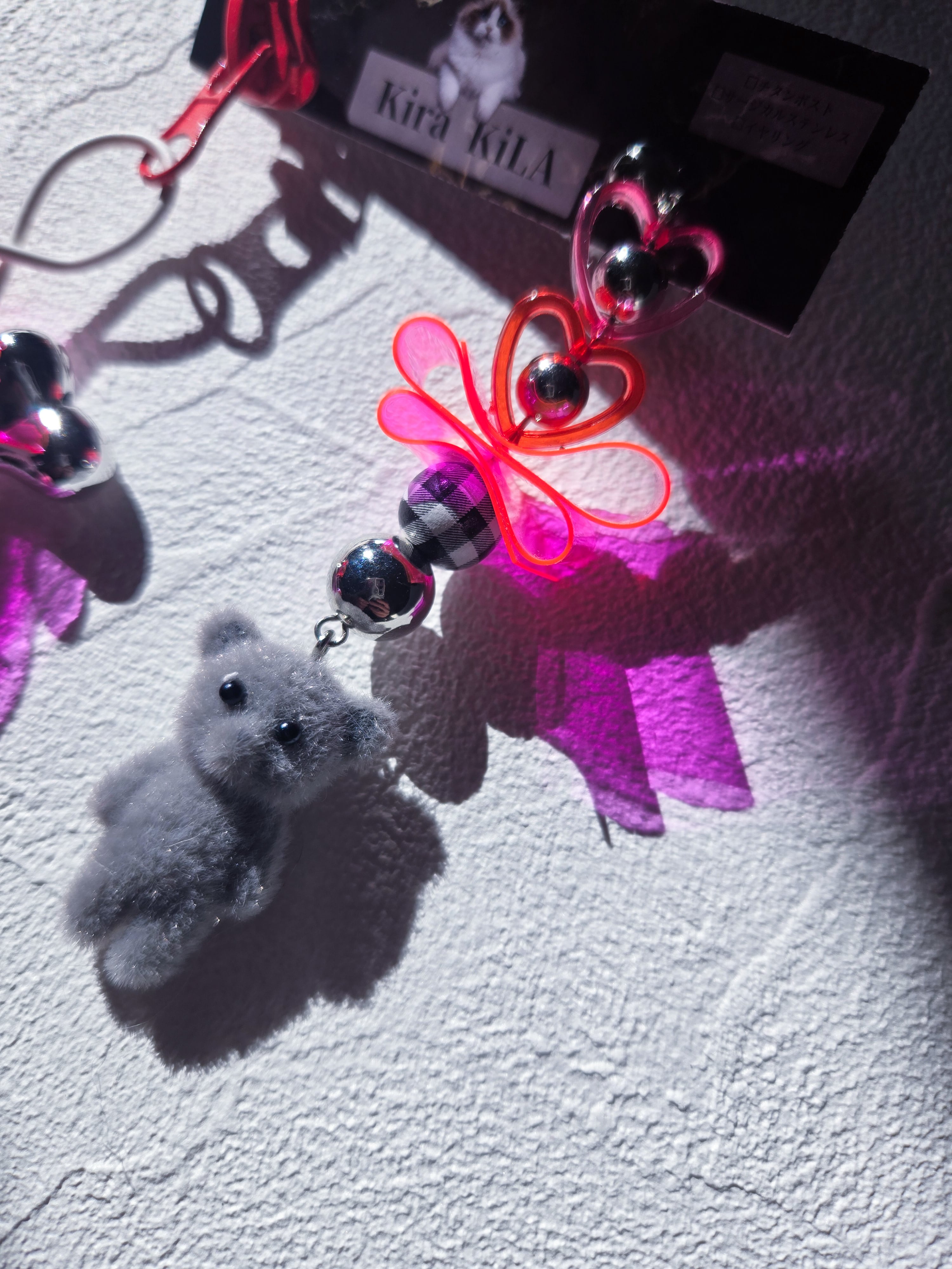 対になるアシンメトリーのピアスのゆらゆら揺れるくまちゃんが可愛い♡