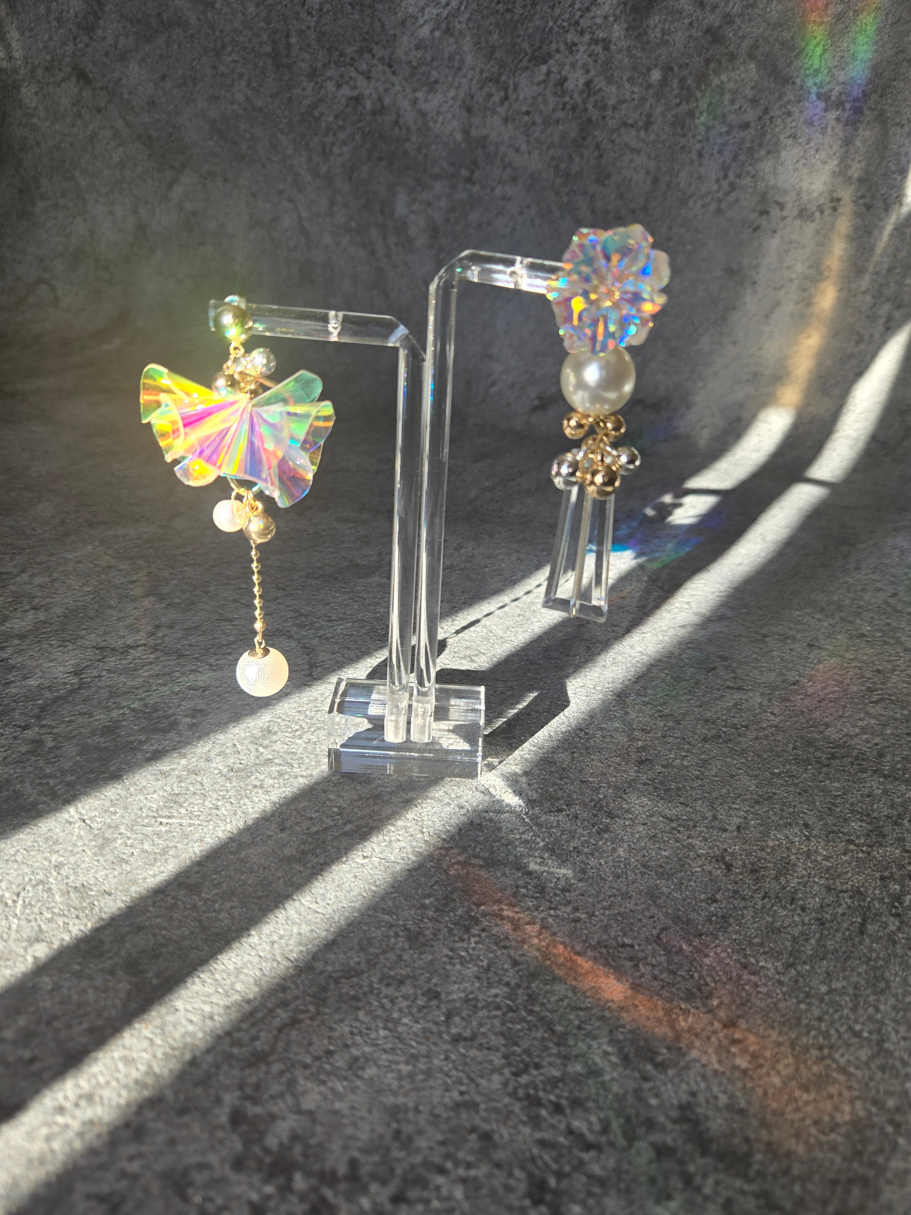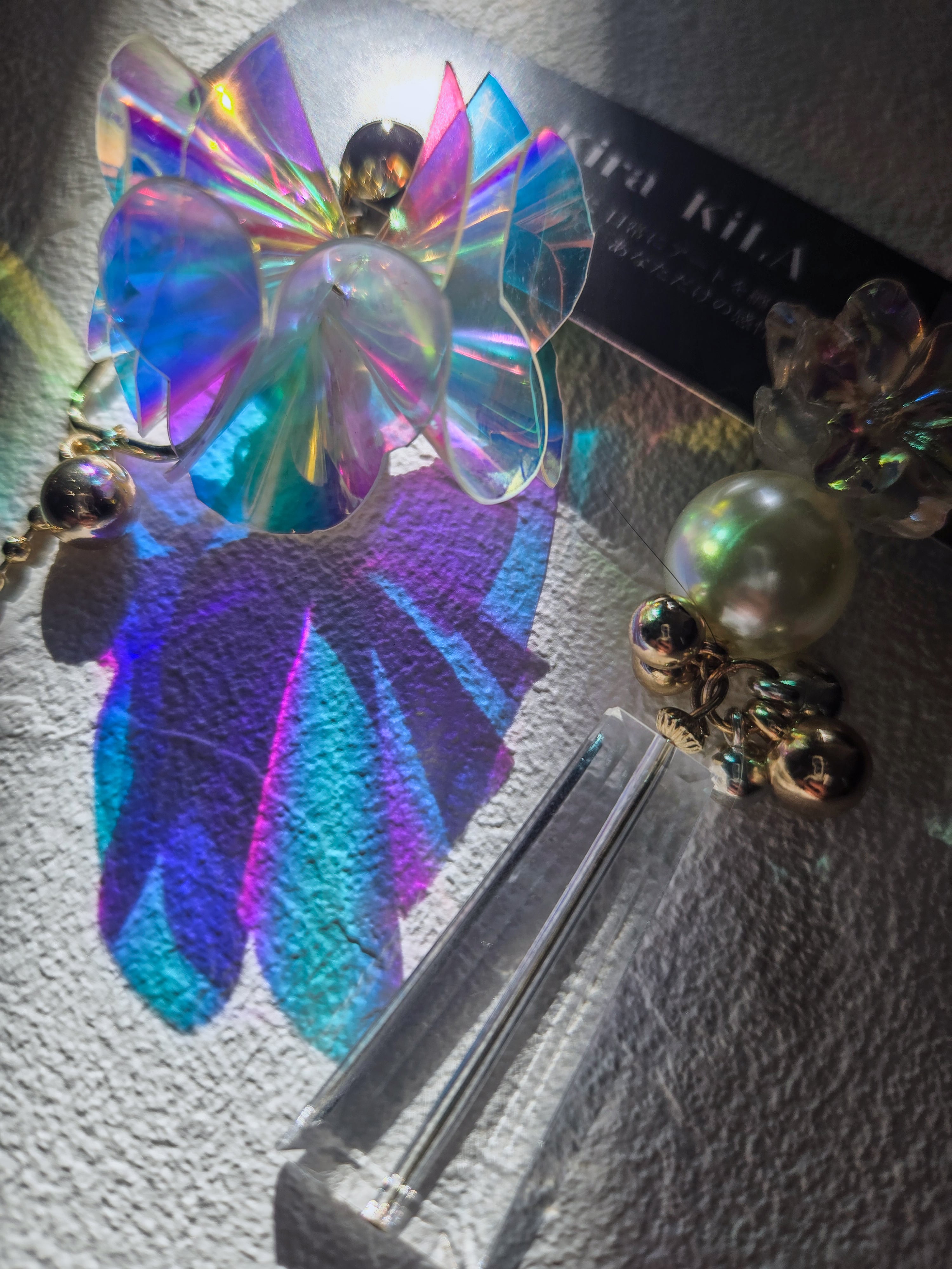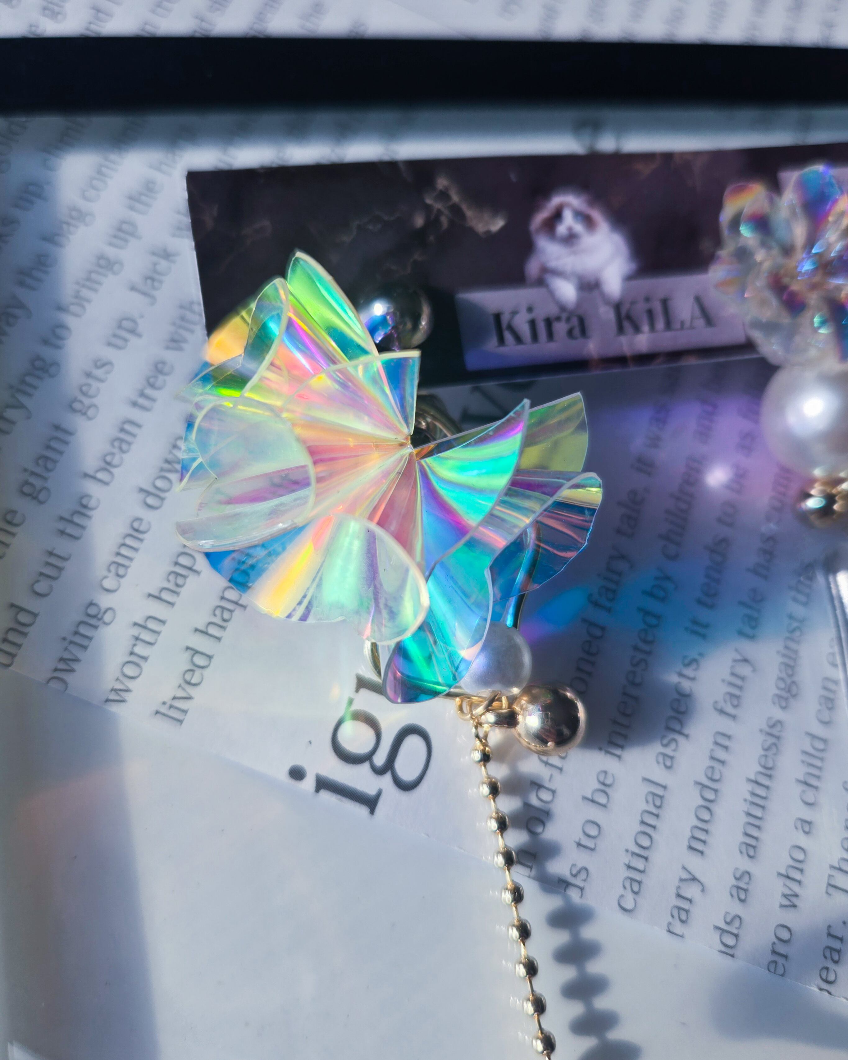 【金属アレルギー対応】オーロラPVC 大ぶり フリル 綺麗 可愛い 華奢 ウエディング フォーマル 軽い