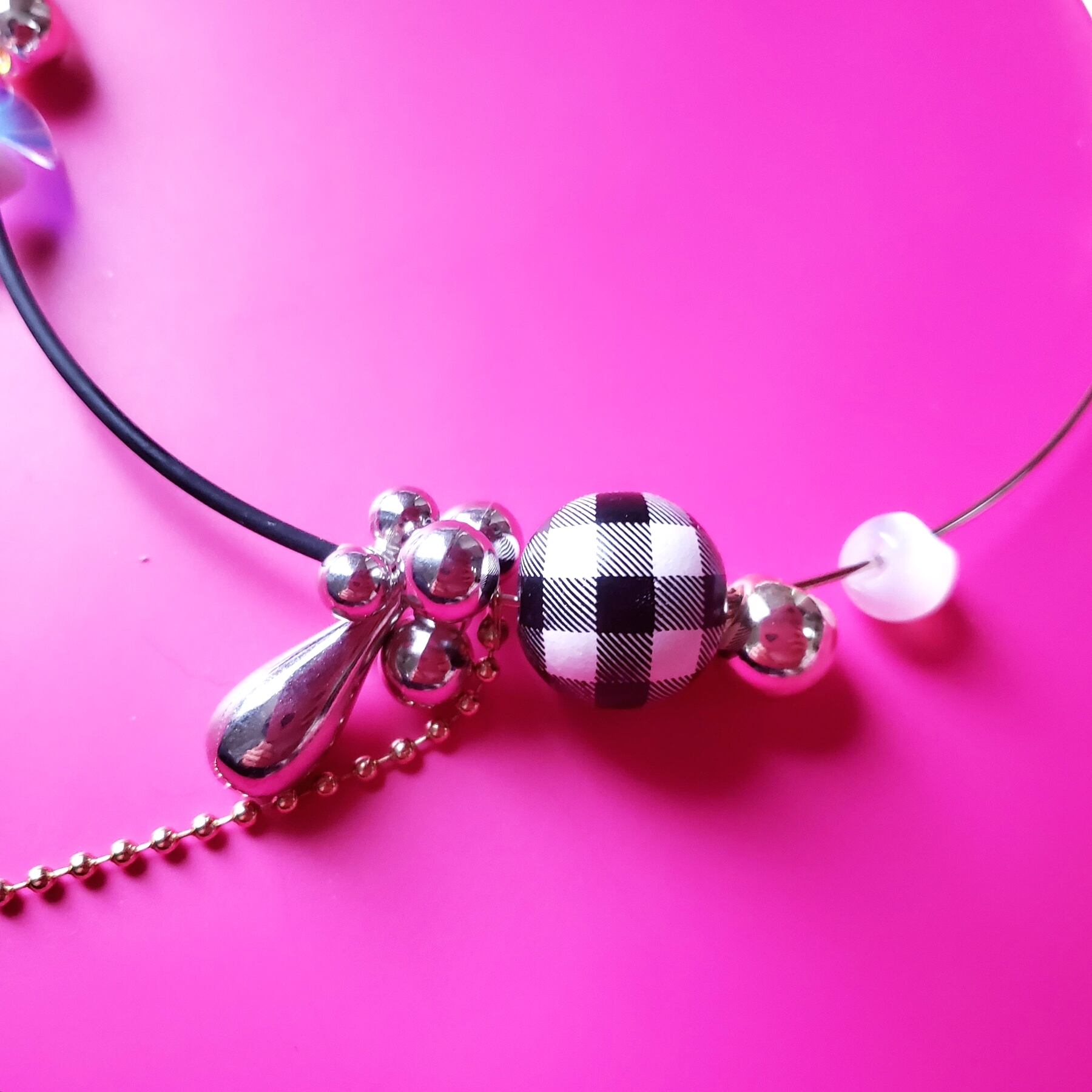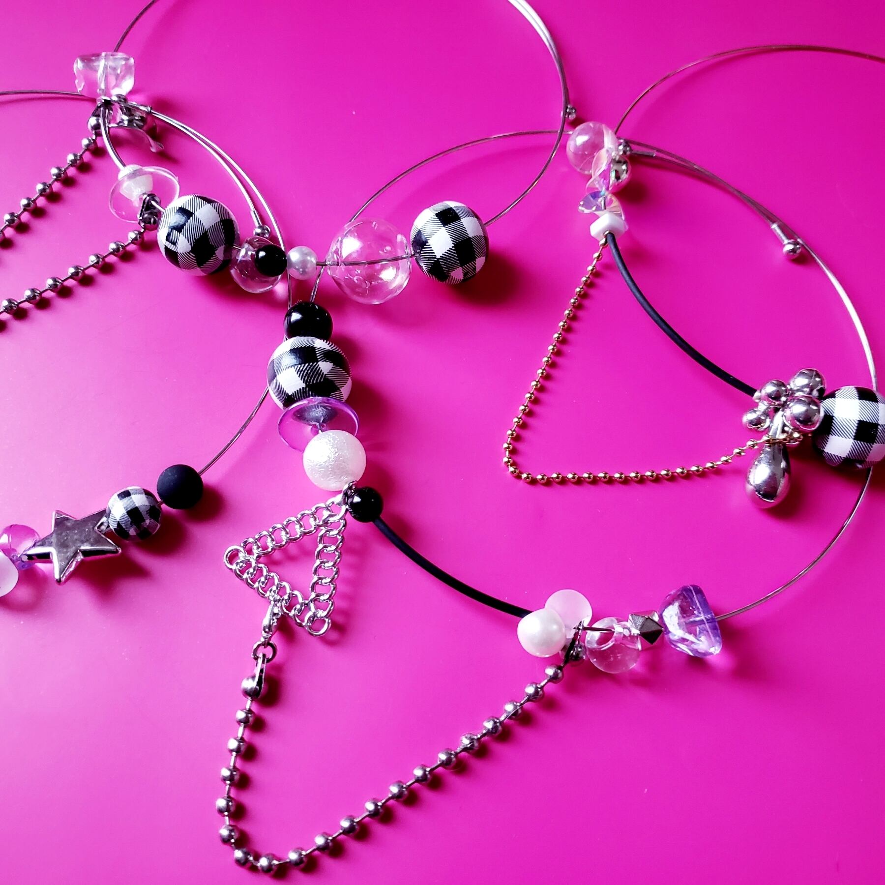 【モード系】個性派フープネックレス ボールチェーン PVC ライトゴールド【モードアクセサリー】
