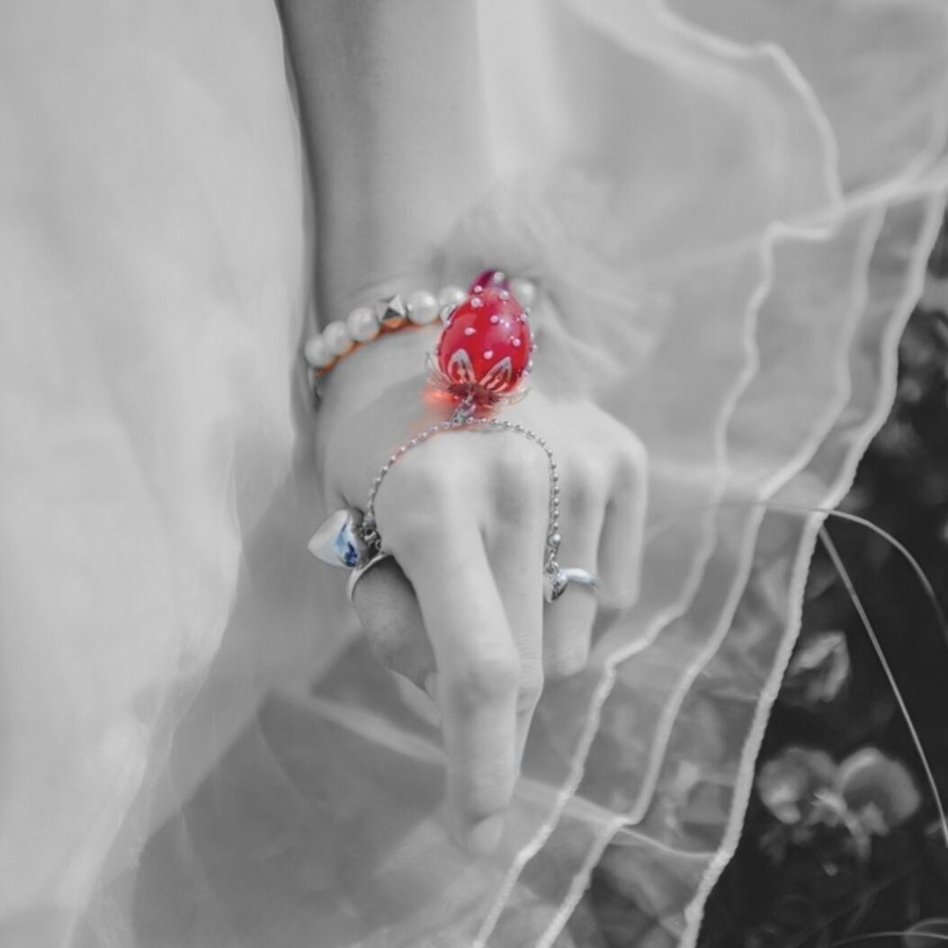 フリーサイズになっているので、自由な着け心地で指先を彩ります。