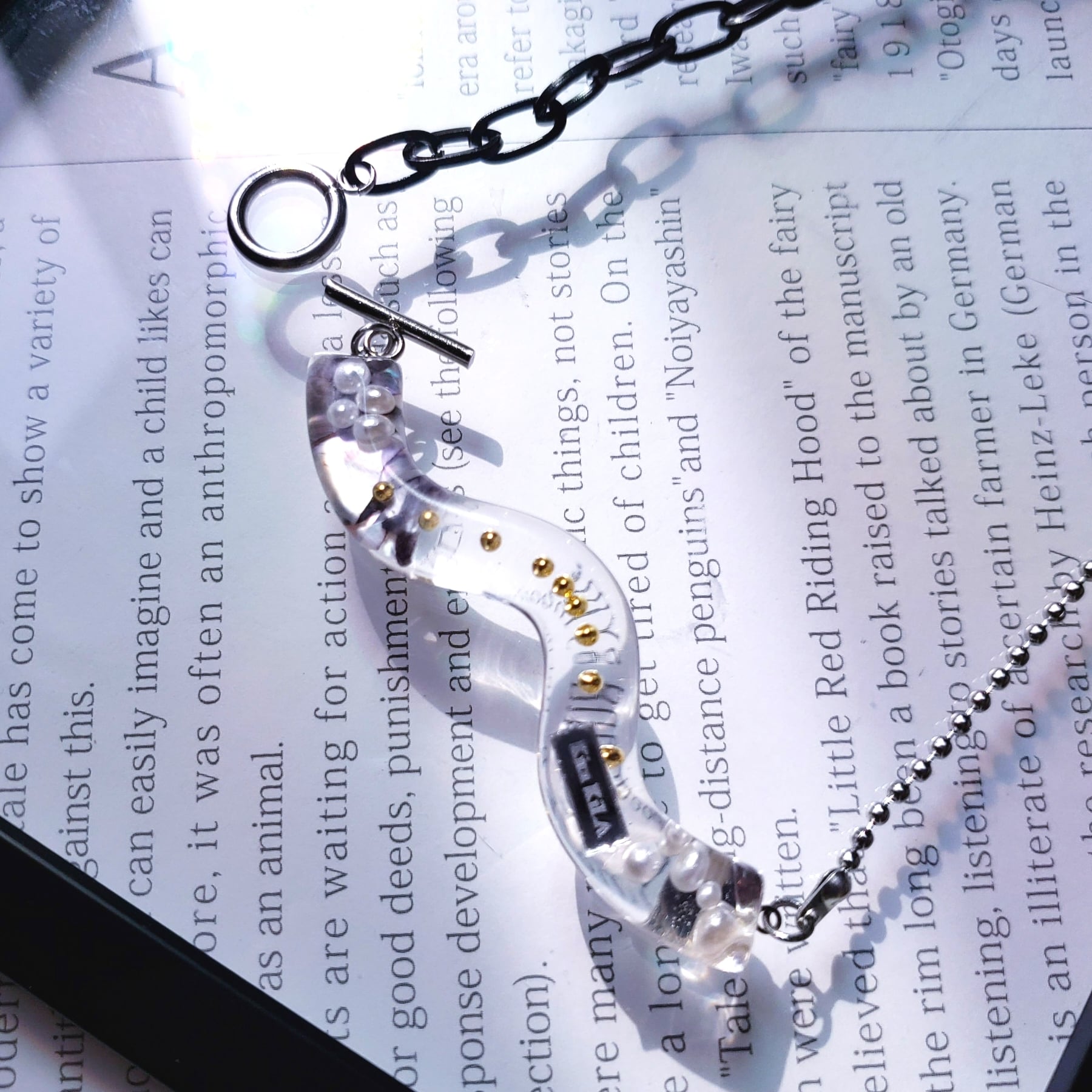 モード系 個性派 モノトーン 無機質 レジン うねうね 透明 クリアモチーフ マンテルネックレス マンテル式リゾートアクセ 夏アクセサリー 大人女子 キレイ目 洗練された プレゼント ギフト ご褒美 上品
