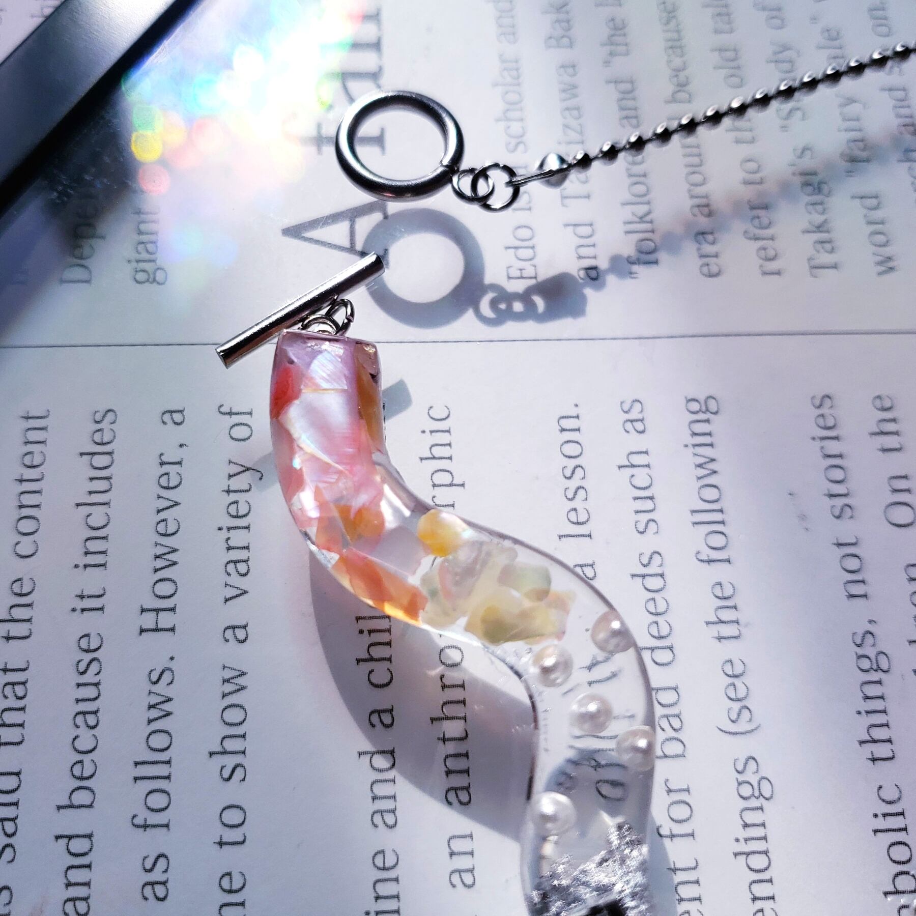 モード系 個性派 モノトーン 無機質 レジン うねうね 透明 クリアモチーフ マンテルネックレス マンテル式