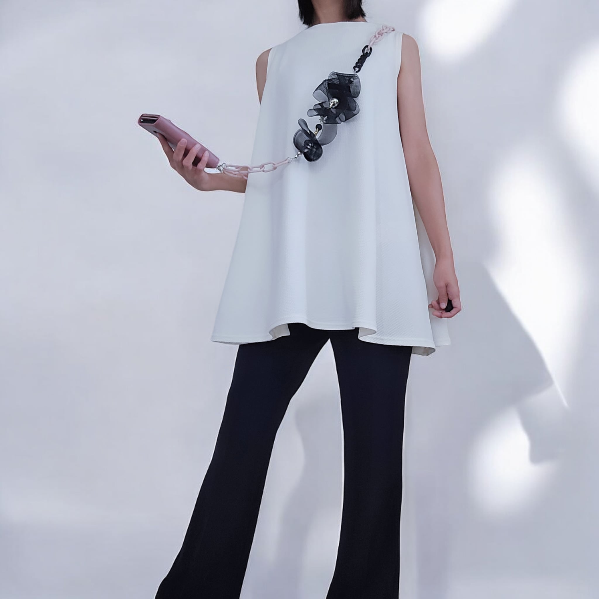 無地のカットソーやカジュアルな服、大人っぽいワンピースなど、服を選ばずに使えるデザイン。