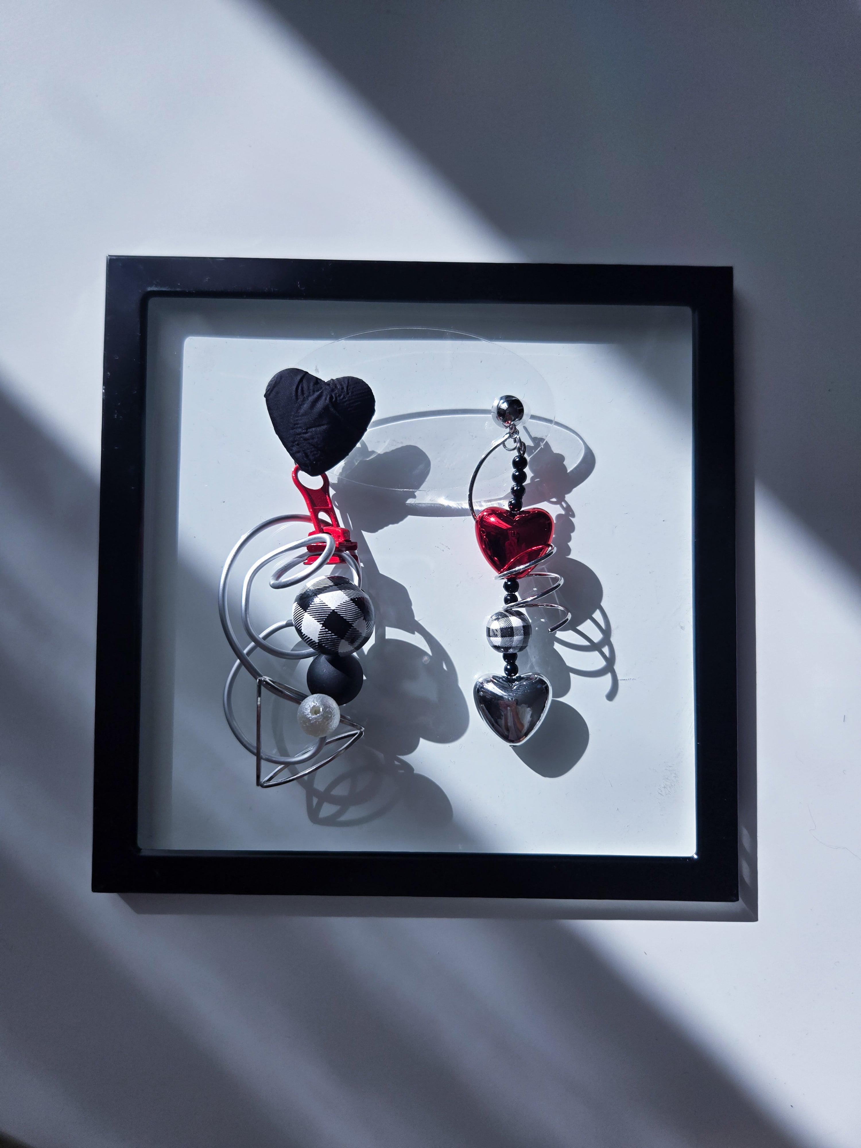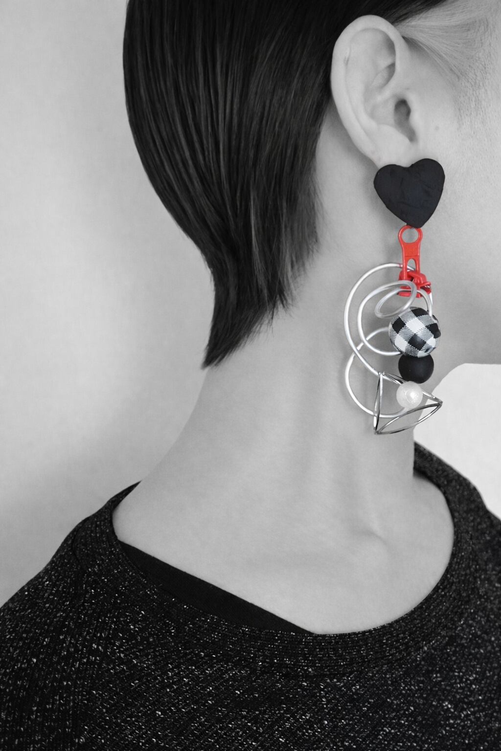 モードアクセサリー モード ユニーク ハート モノトーン おしゃれ 個性的 セレクト ピアス 金属アレルギー対応