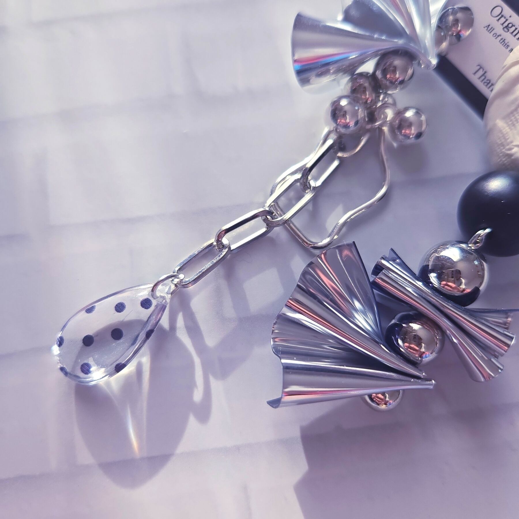 【金属アレルギー対応】モード系 PVC フリル 大ぶり モードアクセサリー ユニーク モノトーン おしゃれ 個性的 可愛い 水玉