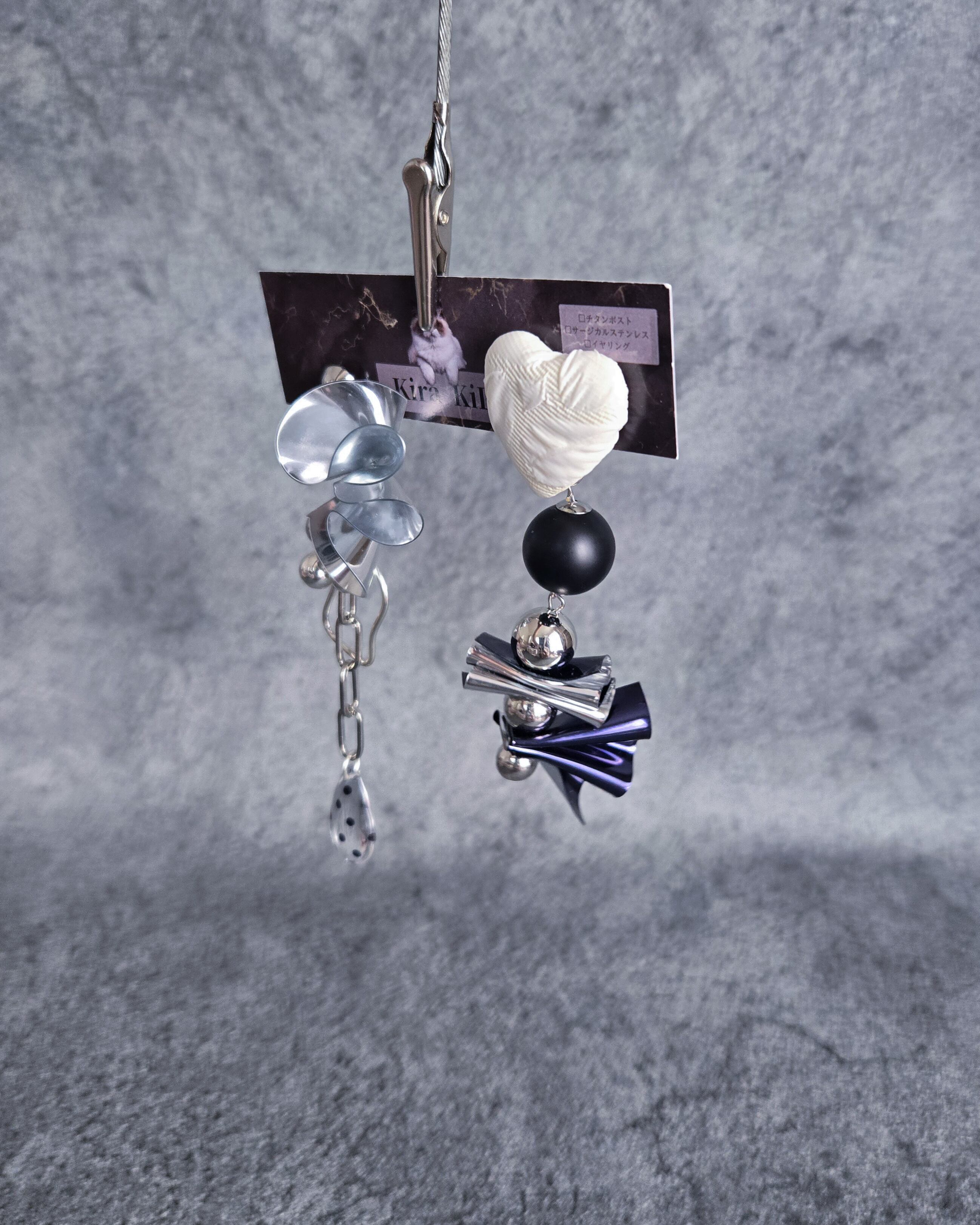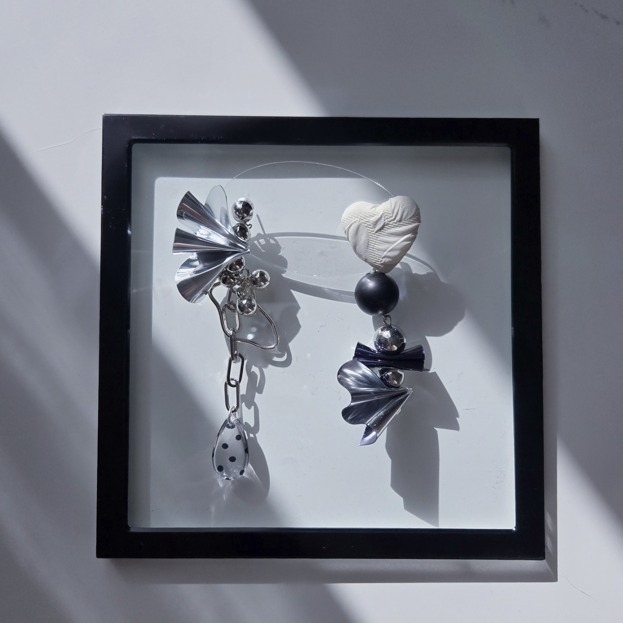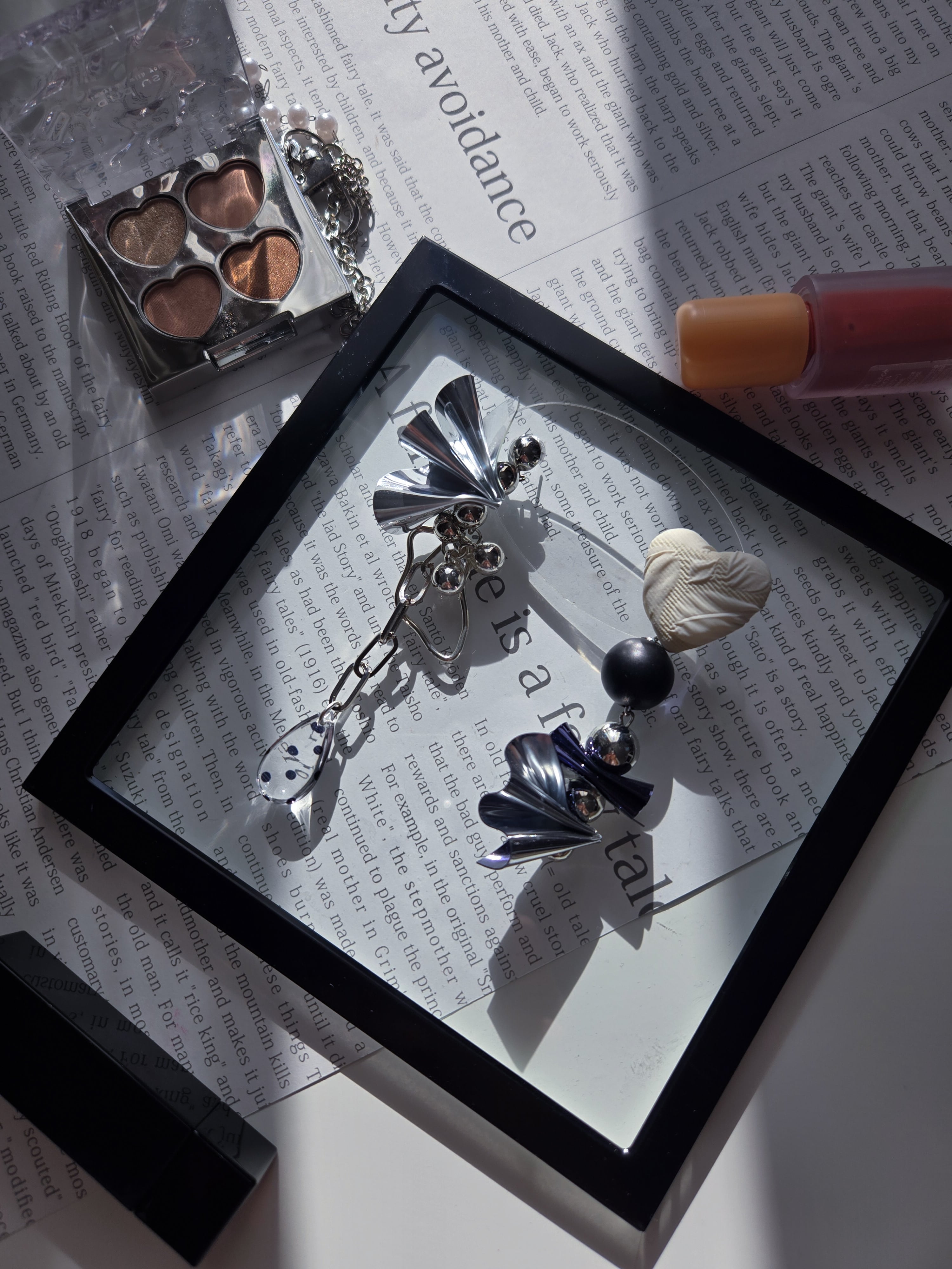 モノトーンの色合いは、耳元からさりげないおしゃれさを演出します。