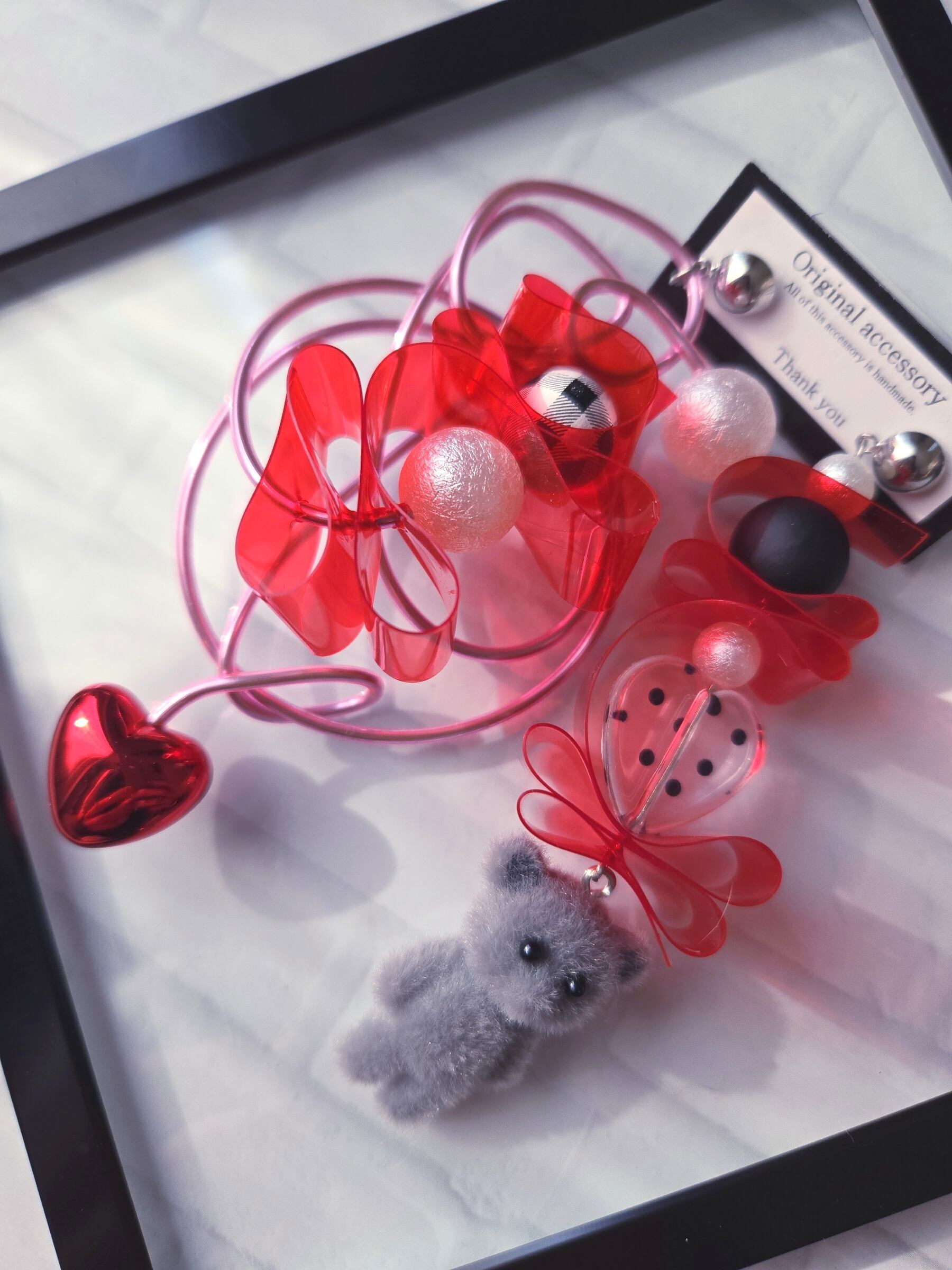 モードアクセサリー PVC 赤 大ぶりピアス カラフル pop 可愛い ハート 異素材MIX ユニーク 個性的